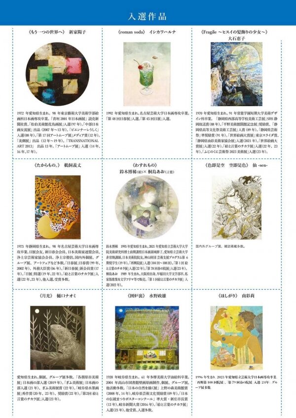 本展はアートは人々の心を潤し活力を与えるという信念のもと、作り手、そして鑑賞者の心が豊かになるような作品を、1点でも多く世に発信したいと願っています。応募者362名、応募作品456点から画像による1次審査を通過したのが128点、実際の作品による2次審査を通過した55点が入選、その中から受賞者を選びました。