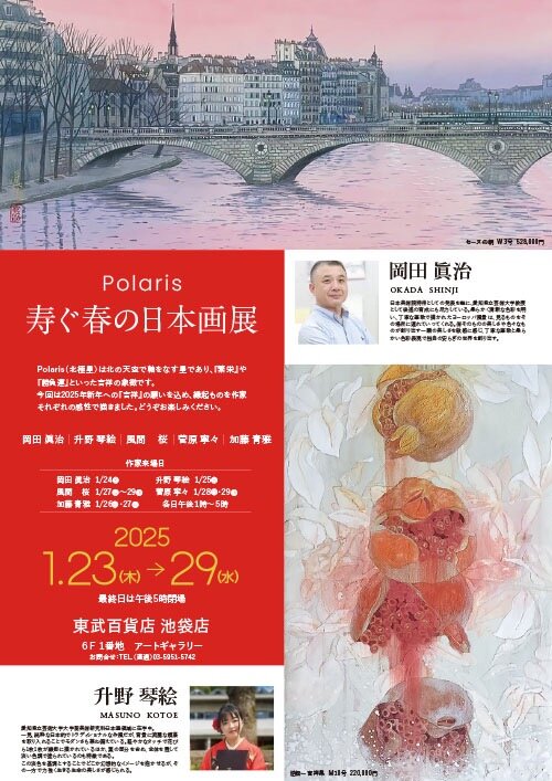 【展覧会】岡田眞治先生2025年1/23(木)〜1/29(水)まで東武百貨店にて『Polaris 寿ぐ春の日本画展』が開催されます。