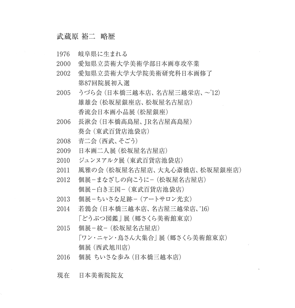 展覧会のお知らせ 武蔵原裕二 日本画展 -ちいさな歩み-