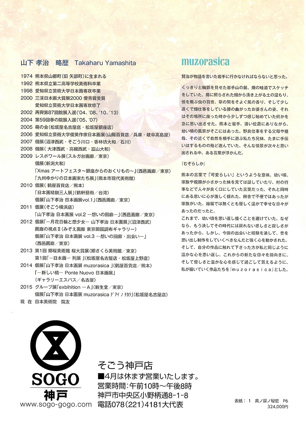 【展覧会のお知らせ】山下孝治 日本画展-muzorasica デアイノチカラ - そごう神戸店