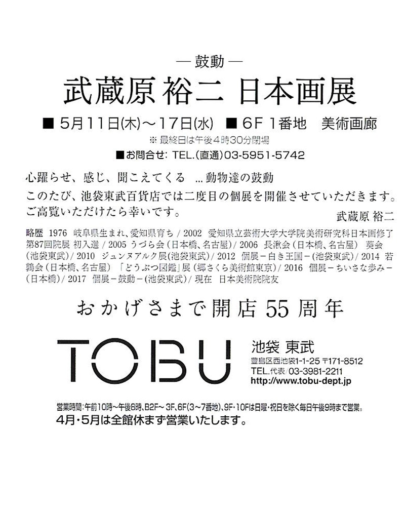 【展覧会のお知らせ】武蔵原裕二 日本画展 -鼓動- 池袋東武にて