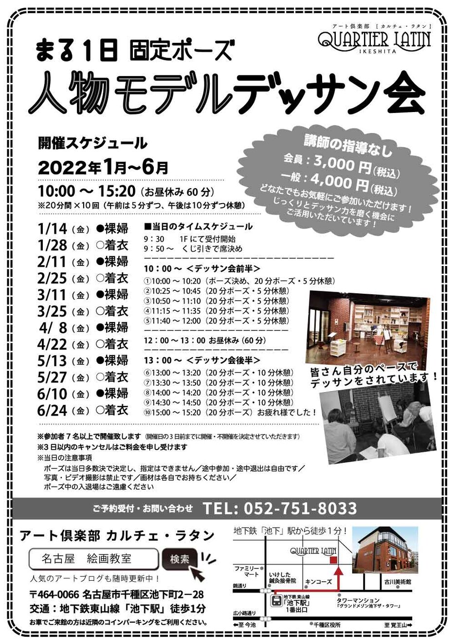 平素よりアート倶楽部カルチェ・ラタンのデッサン会企画「まる一日固定ポーズのデッサン会」をご愛顧下さいまして誠にありがとうございます。
