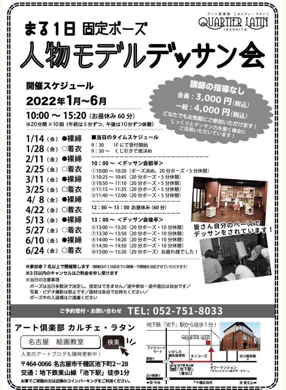 モデルさんのポーズは毎回10:00〜15:20(お昼休み60分)