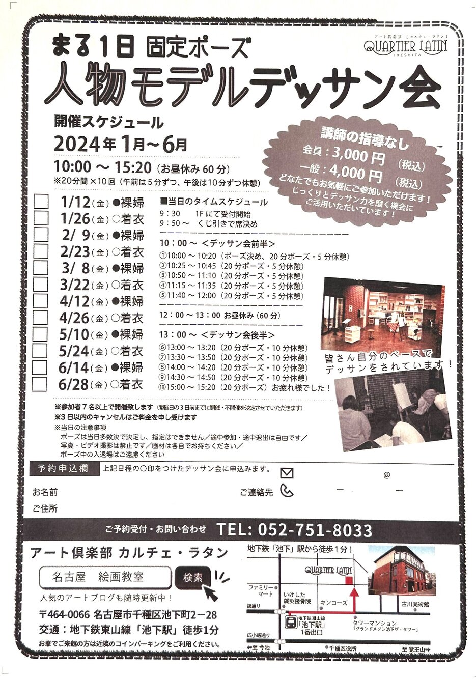 【デッサン会】2024年・1月~6月迄の日程のお知らせ