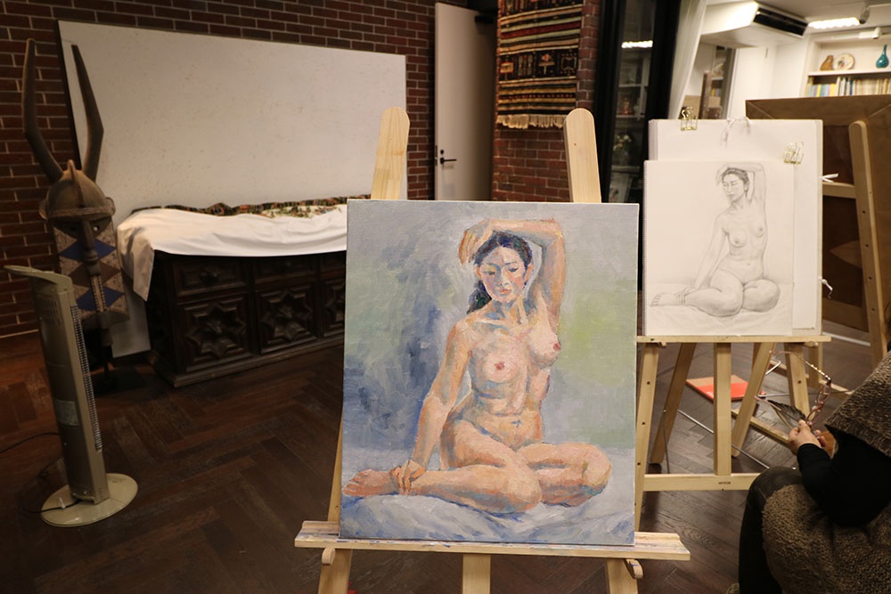 まる1日固定ポーズの裸婦デッサン会の様子 2/14