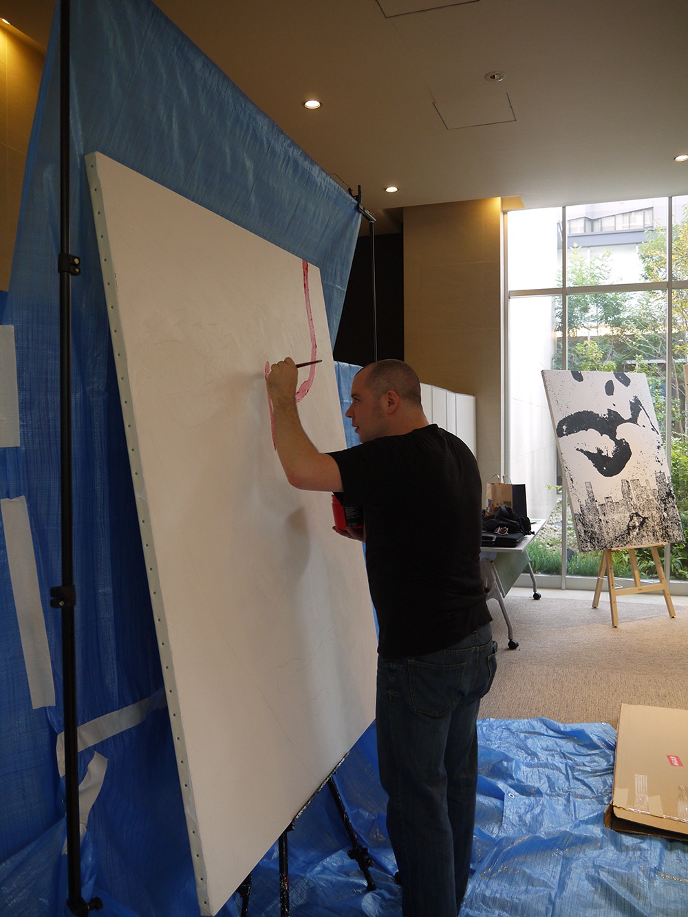 アメリカ人アーティスト、ロバート・ムーア氏によるライブ・ペインティング。