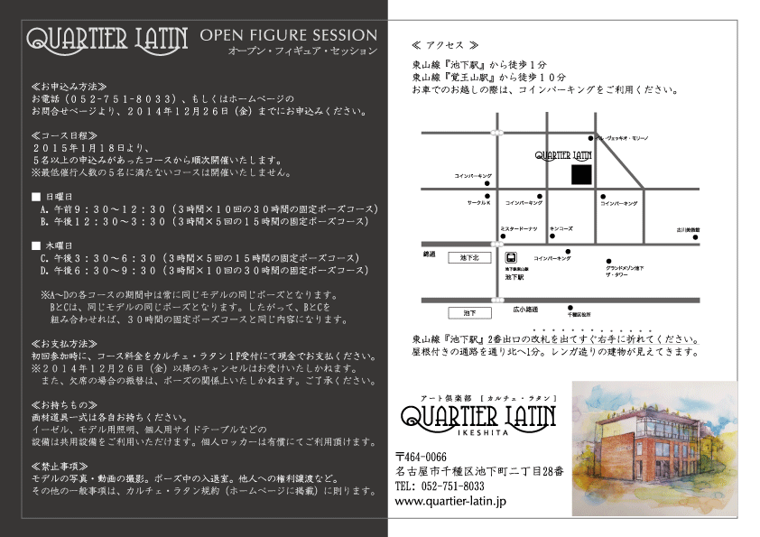 お問合せ、お申込みは、052-751-8033(アート倶楽部カルチェ・ラタン 代表)