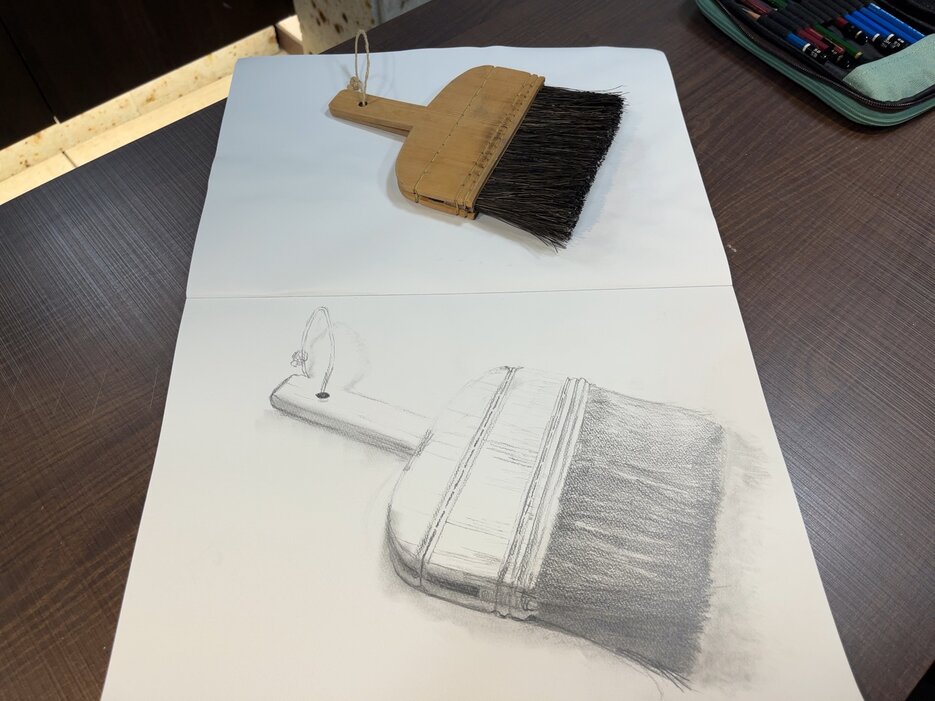 中1の生徒さんです。パースを正確に捉えて『刷毛』のデッサンをすることができました!