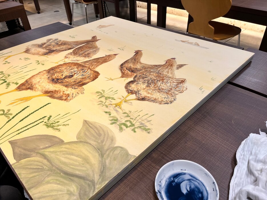 鶏を日本画で描かれています!