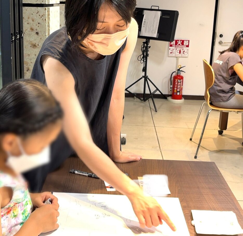 『ためぬり』をして描く筆の使い方を実際jに生徒さんに指導されてる様子です。