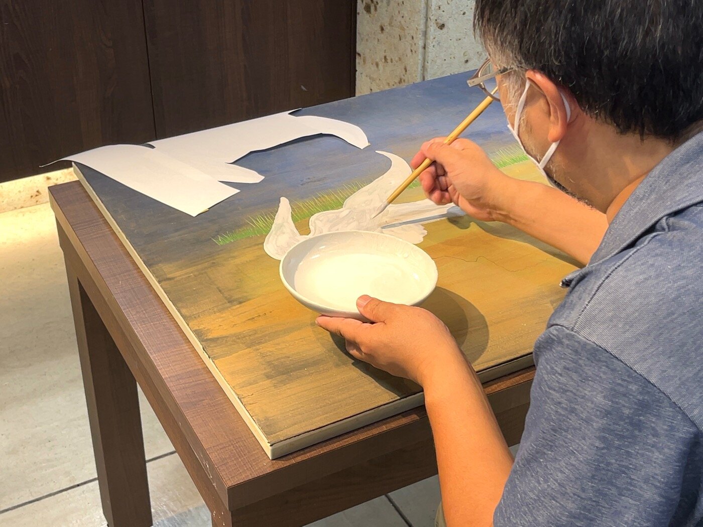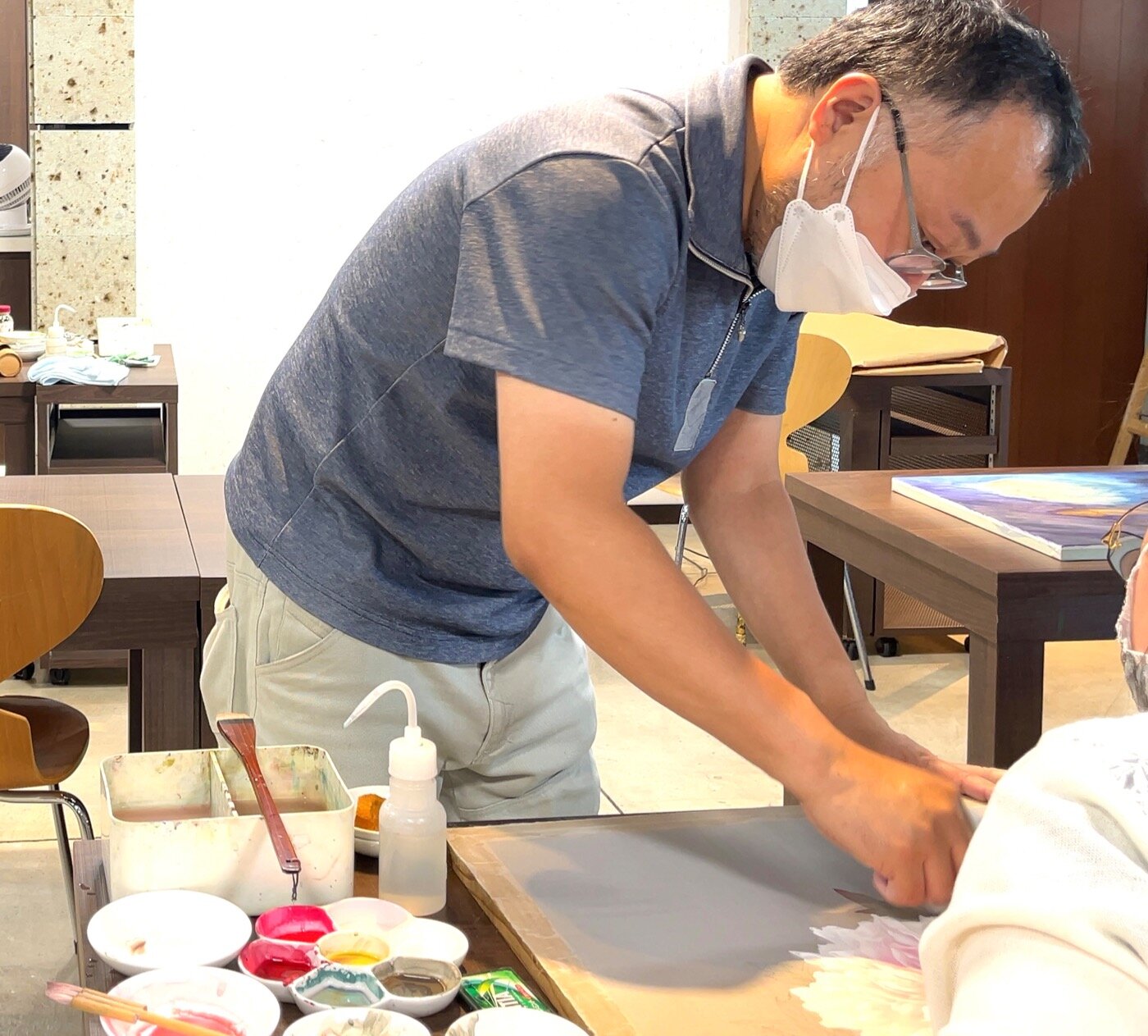 日本画の素材の扱い方を細かく丁寧に生徒さん一人一人に合わせて指導してくださっています。