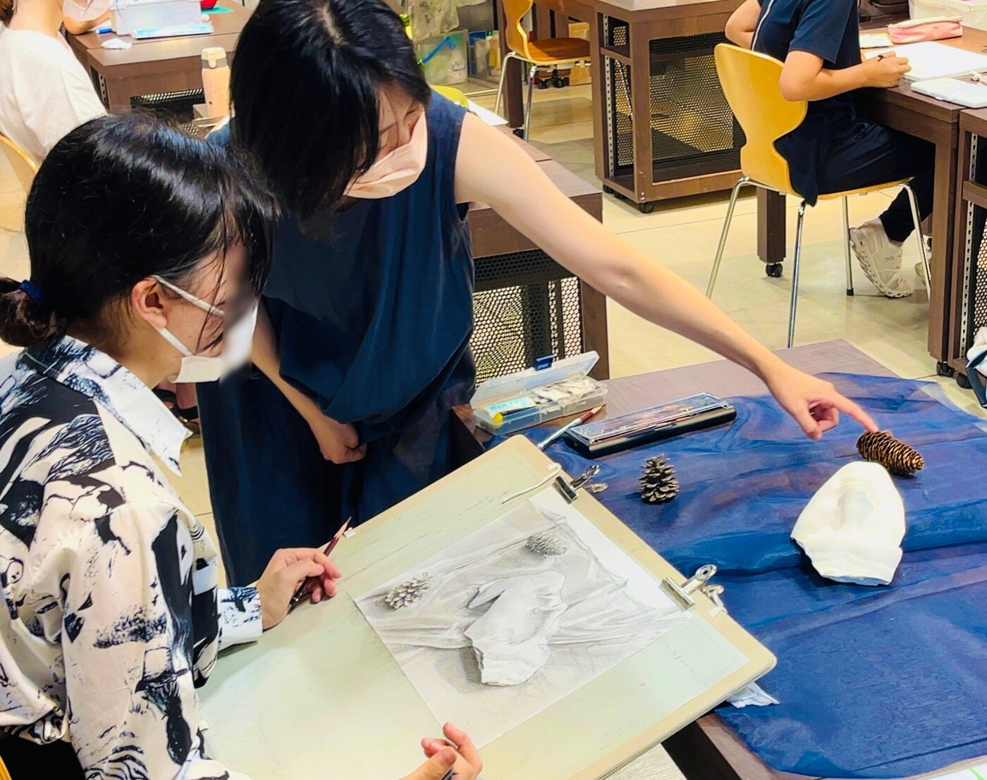 安井彩子先生がデッサンのポイントを丁寧に教えてくださいます。