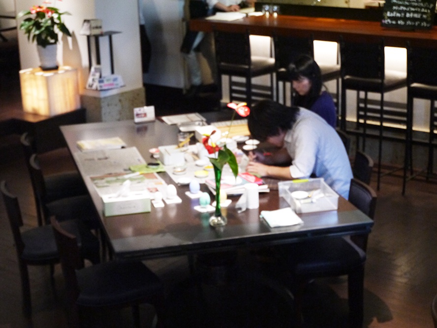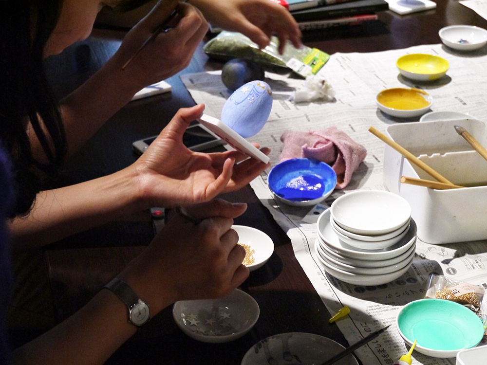 今日は、1F のカフェスペースで、イースターエッグを題材にしたワークショップも開催。