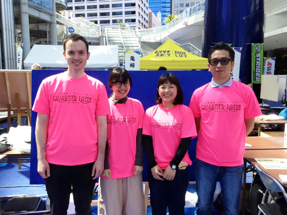 アート倶楽部カルチェ・ラタンの先生とスタッフは、どこにいても目立ってしまう蛍光ピンクのTシャツで参加!
