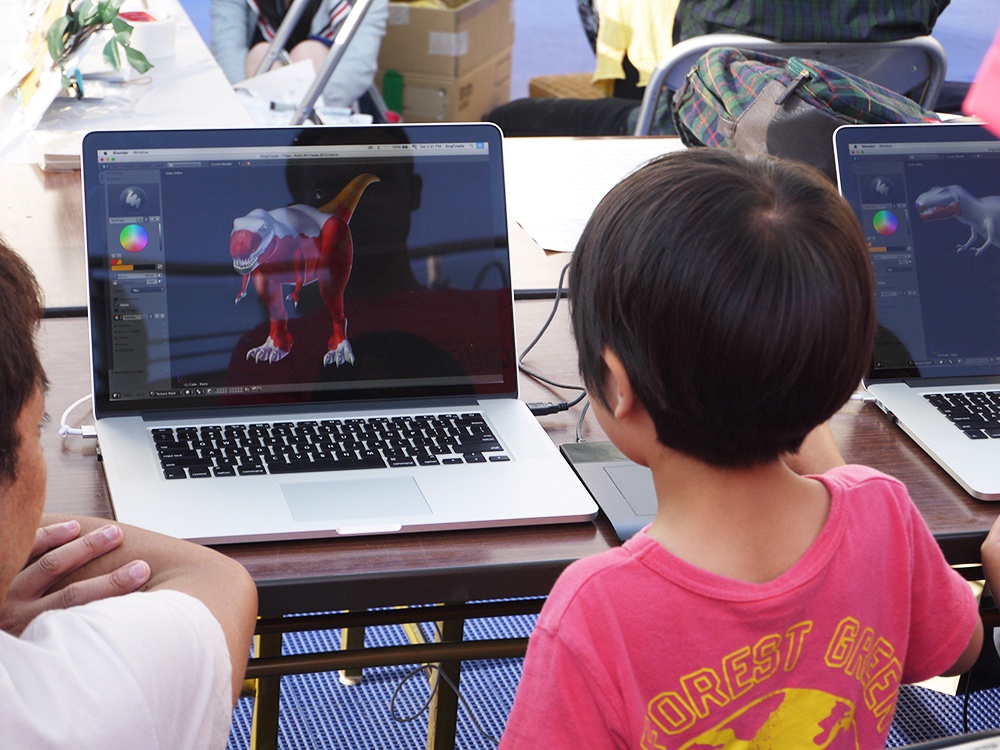 3DのTレックス(恐竜)にペンツールで思い思いの色を乗せ、自分だけの3D作品を完成させました。