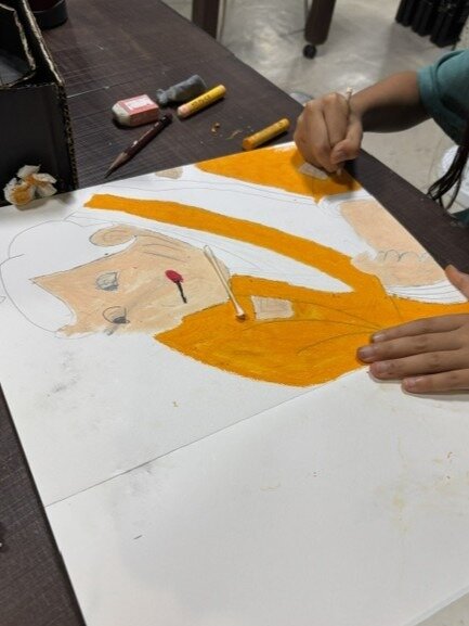 発色の良いクレパスを使い、綿棒などでこすりながら丁寧に仕上げていきました。