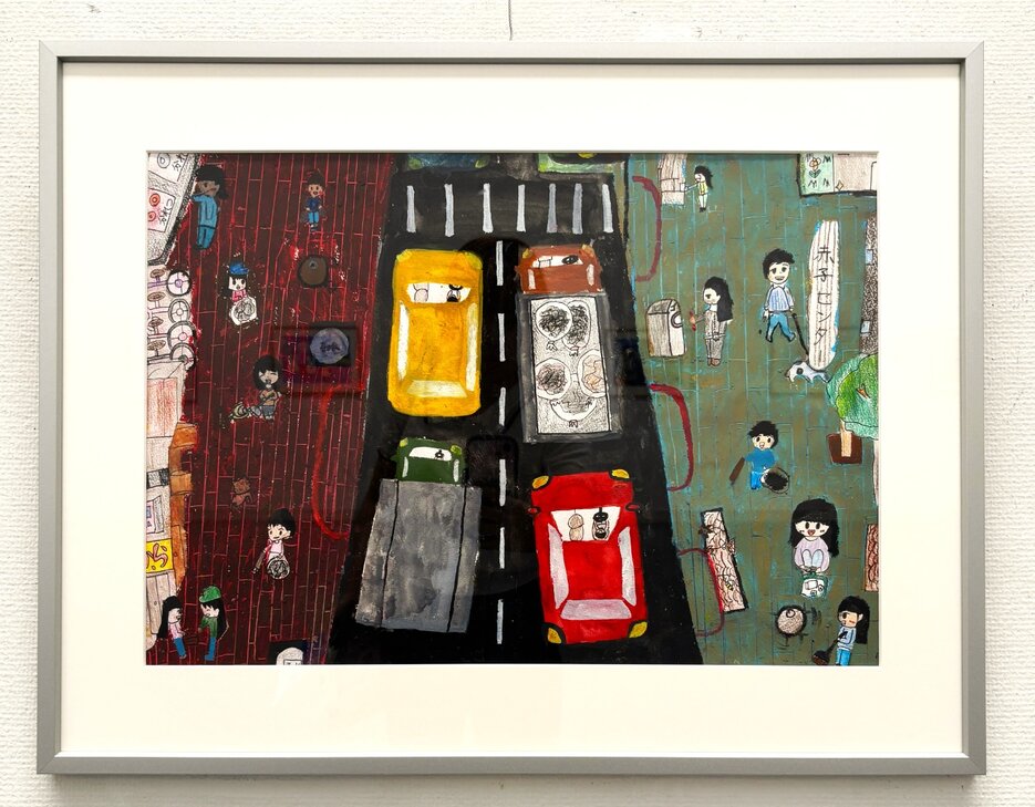 とても面白い構図の作品ですね。上から描く自動車はとても難しいですが、見事に表現できています。