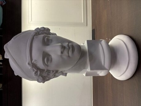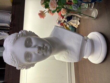 鋭いまなざしと力強い骨格が特徴で重厚な雰囲気を持つこの像は、美術大学や予備校でデッサンの定番モチーフとして広く使われています。