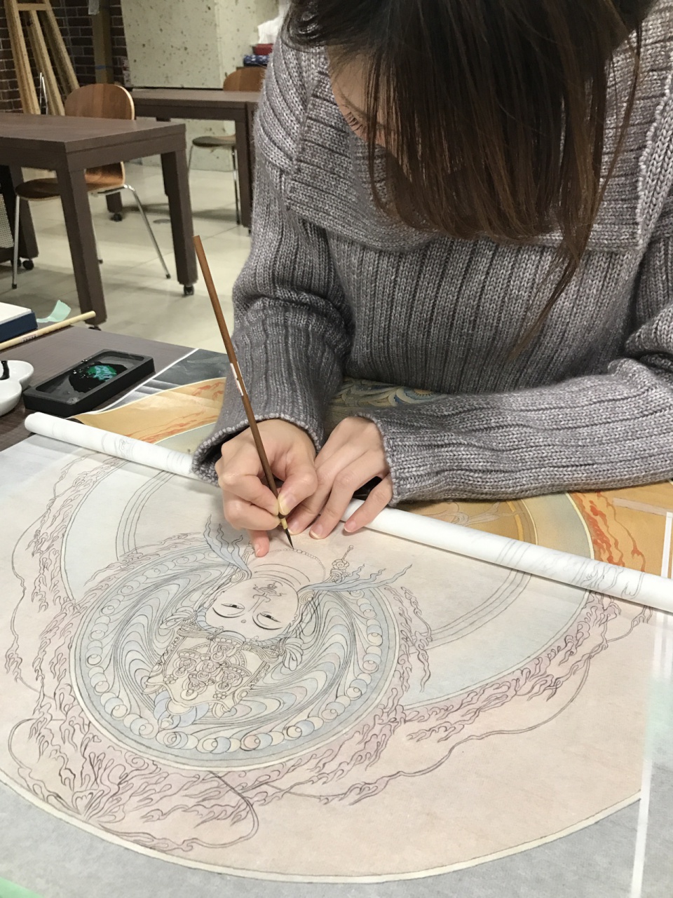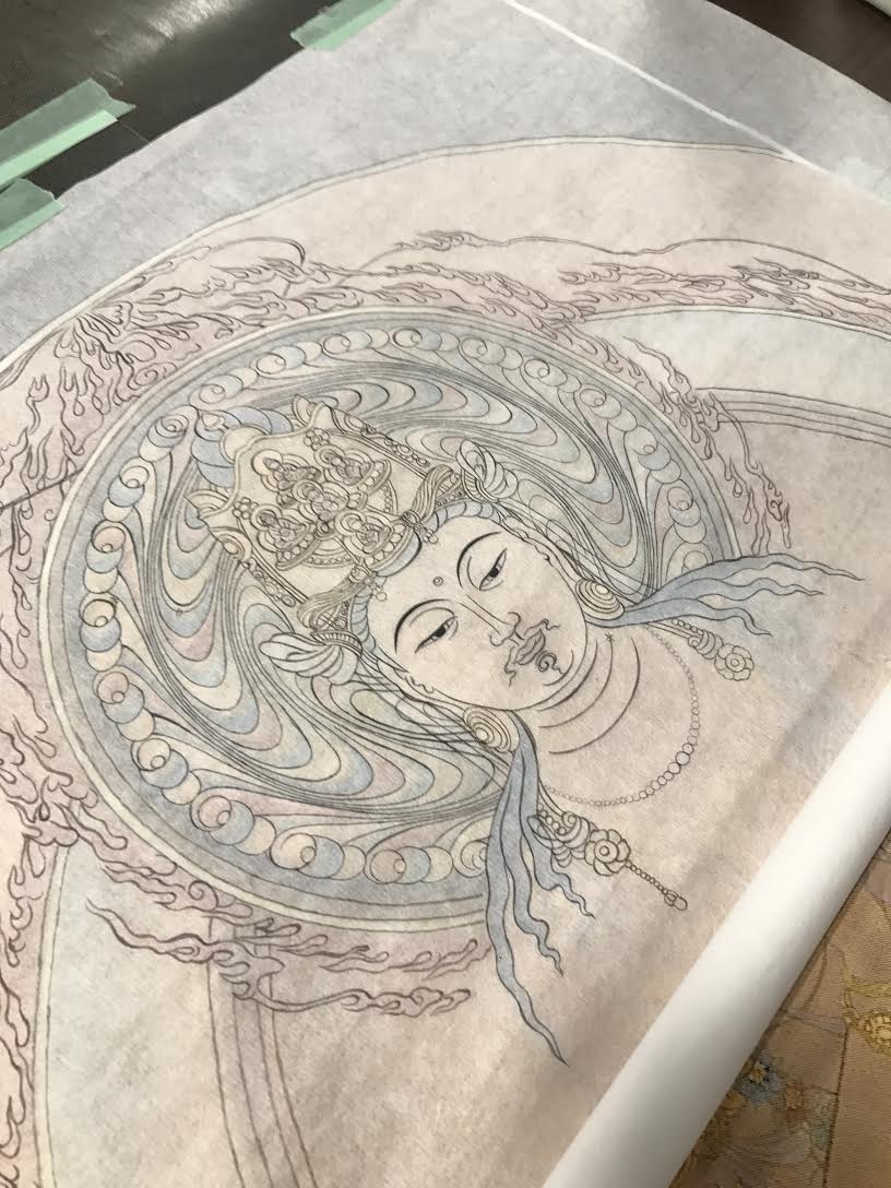 今日は仏画の模写に挑戦している生徒さんの作品を紹介します。