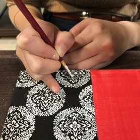 「上げ写し」の作業が終わったら、絹に線描きを写していきます。