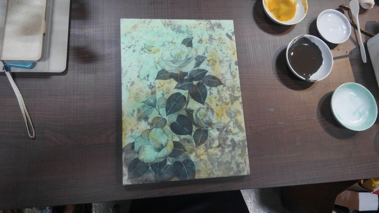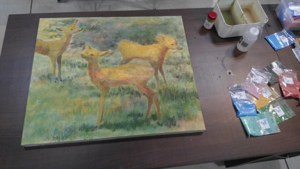 そのあと絵具を入れて背景の雰囲気を出しています。