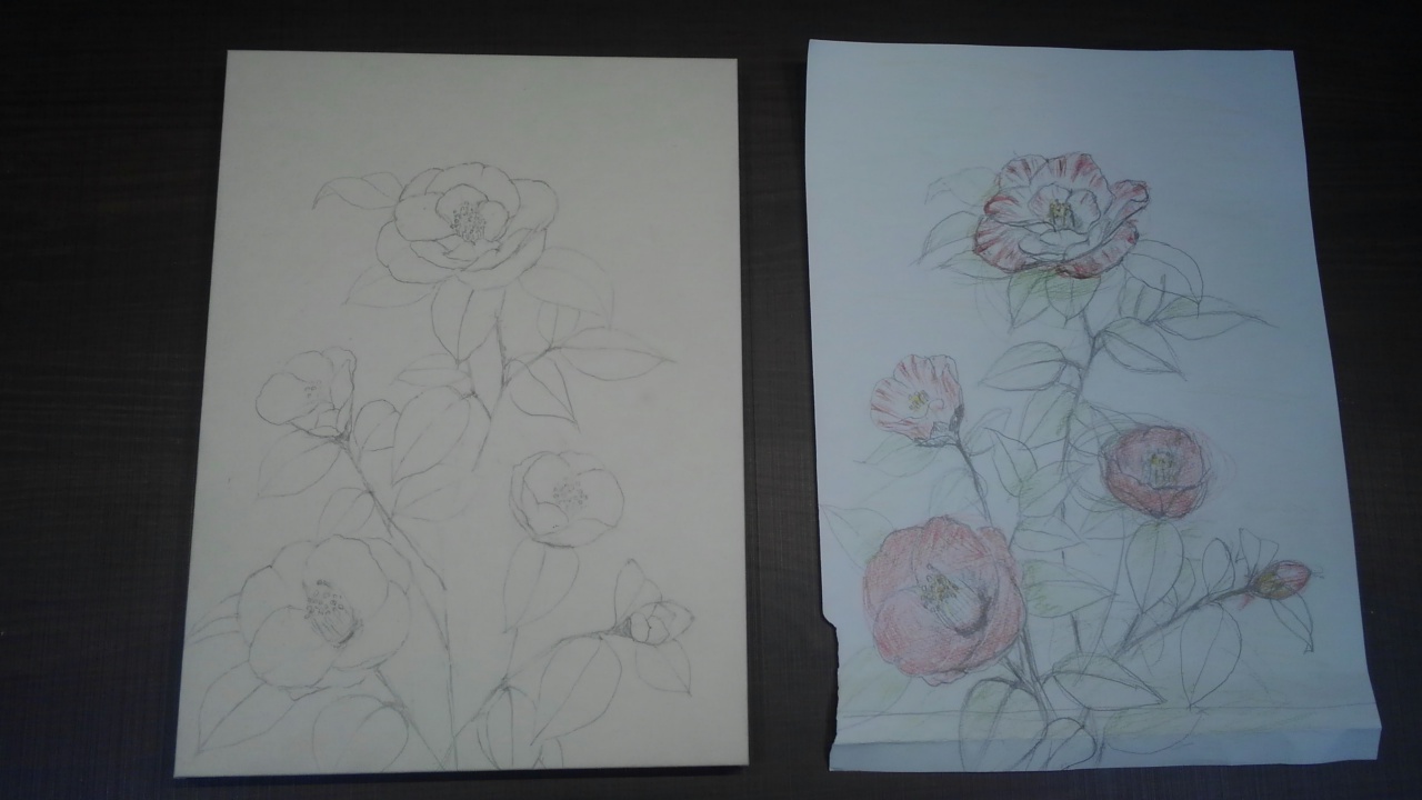 椿を4号で描いている生徒さんの作品です。