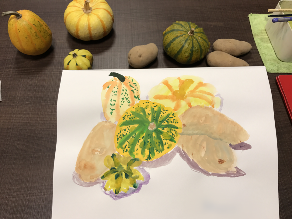 かぼちゃによって黄色や緑に微妙な違いがありますが、それも自分で感じ取って描けました。