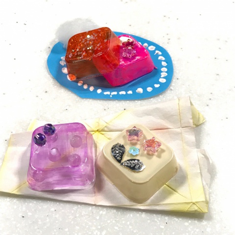 材料をみて「ゼリーにしよう」「内側にもデコレーションしよう」と発想してました◎