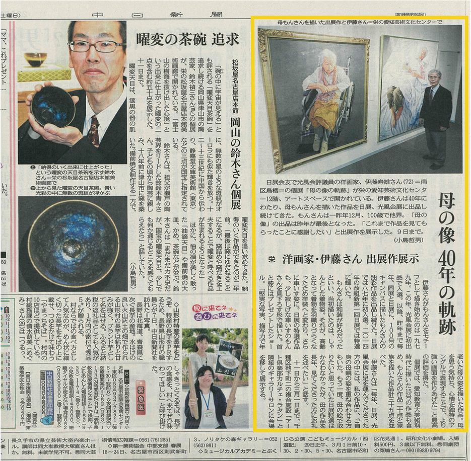 伊藤寿雄先生の個展が中日新聞朝刊に掲載されました