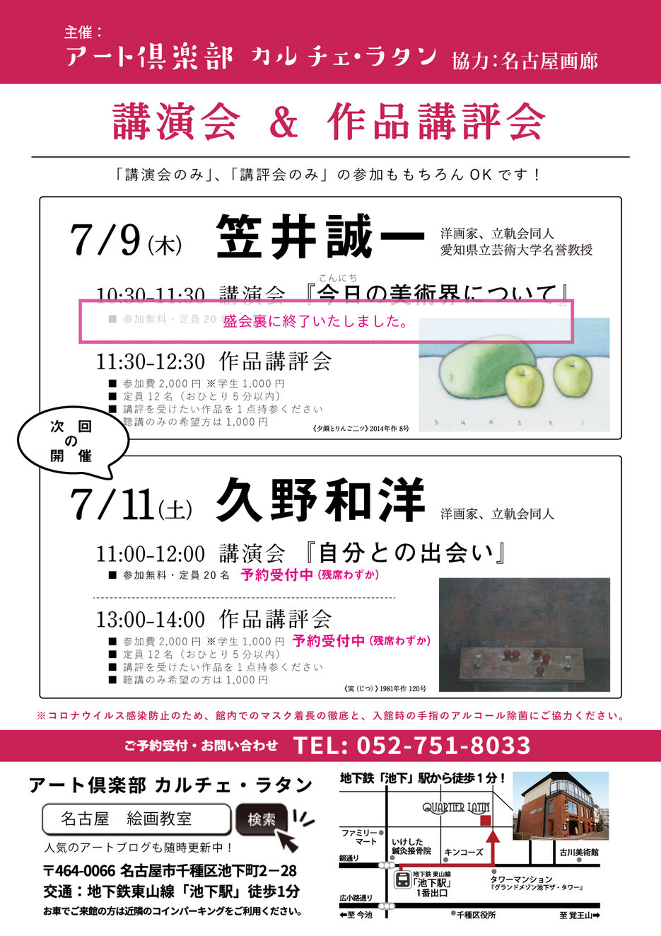 久野和洋先生の『講演会』と『作品講評会』のお知らせ