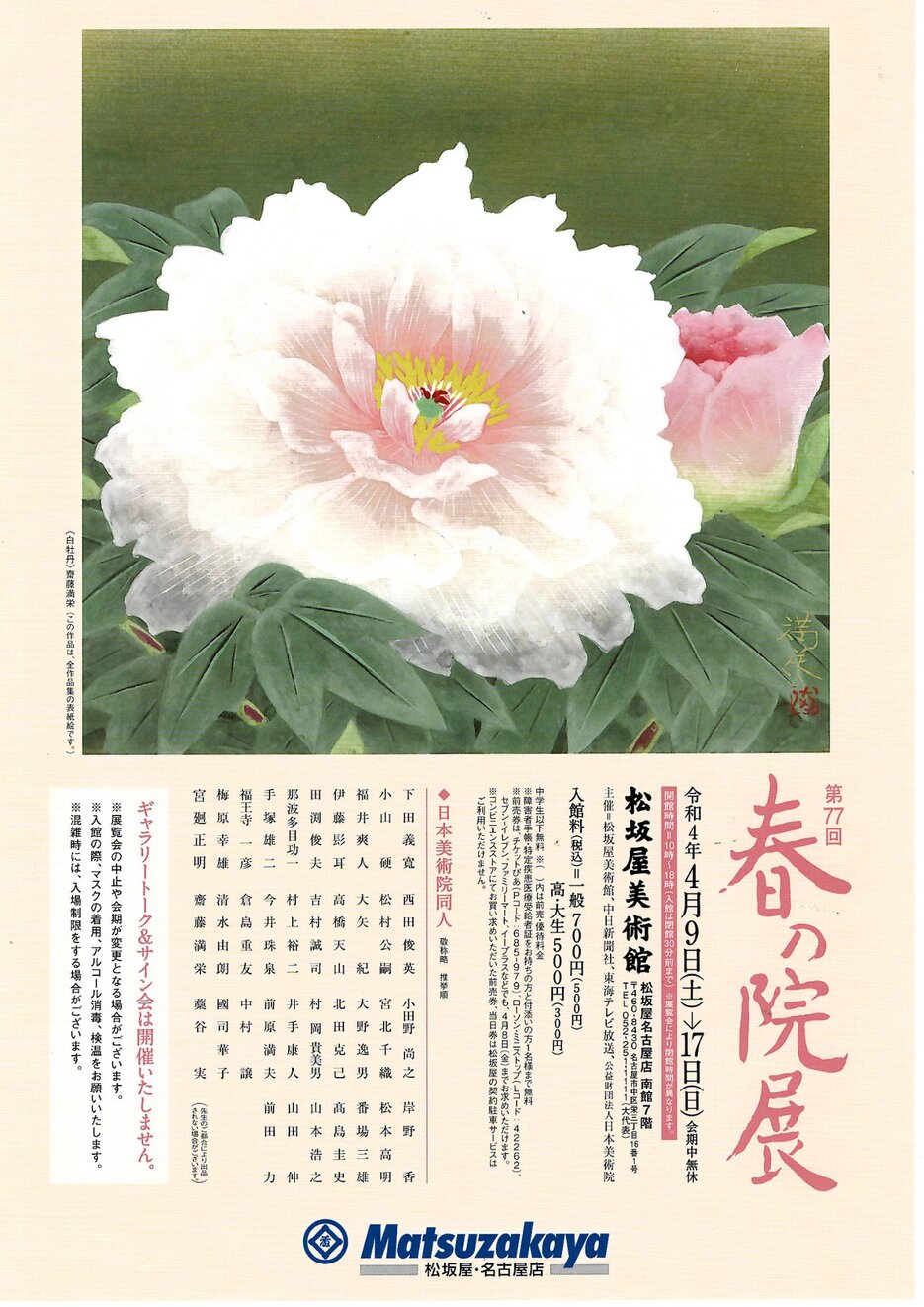 2022年(令和4年度)第77回春の院展 名古屋展が名古屋松坂屋美術館で開催 令和4年〜4月9日(土)4月18日(日)まで