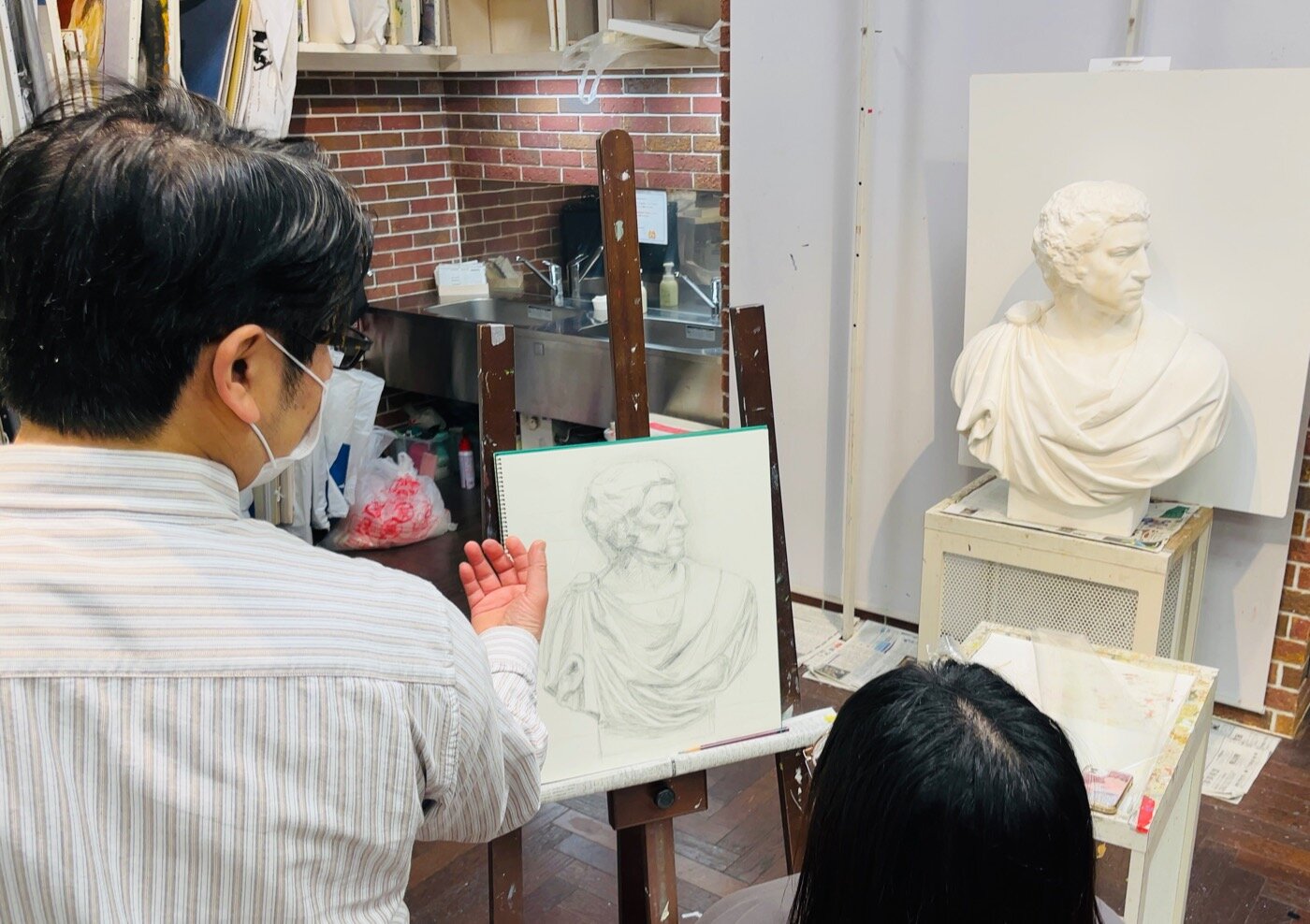 人物画をはじめ、風景画やデッサンのみ強化したい方も同じ教室で受講していただけます。年齢や経験が違う方達が集まりますが、レッスン中は真剣に、休憩時間は和やかな雰囲気の教室です。