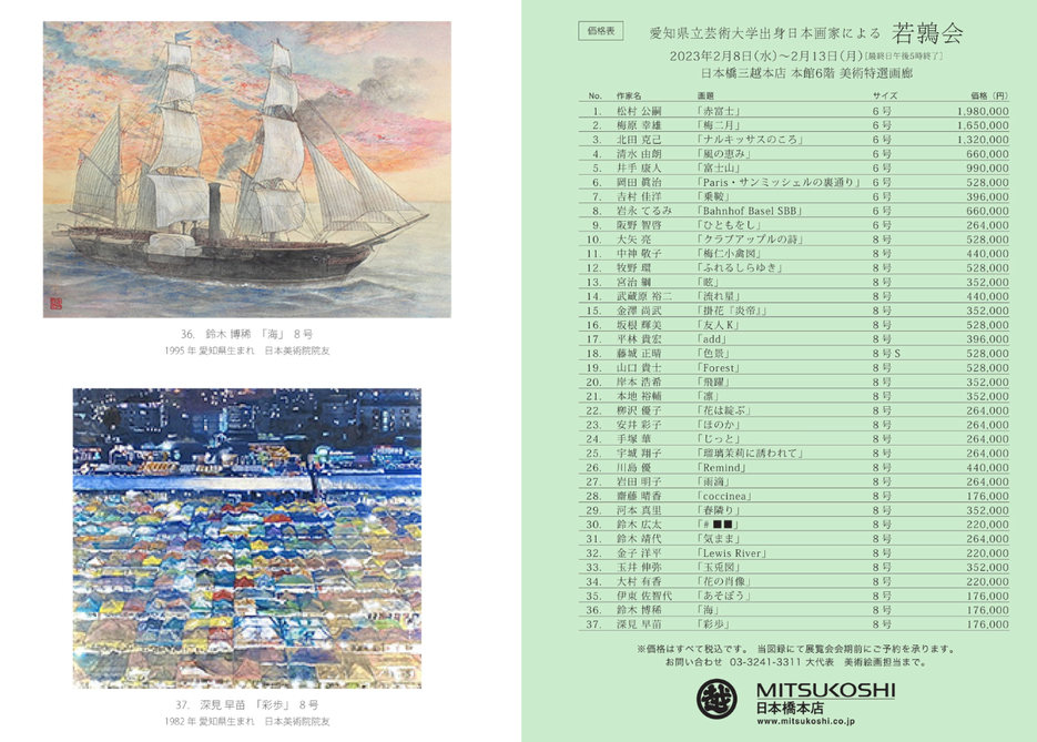名古屋三越にて、愛知県立芸術大学ご出身の日本画家による展覧会が開催されます。