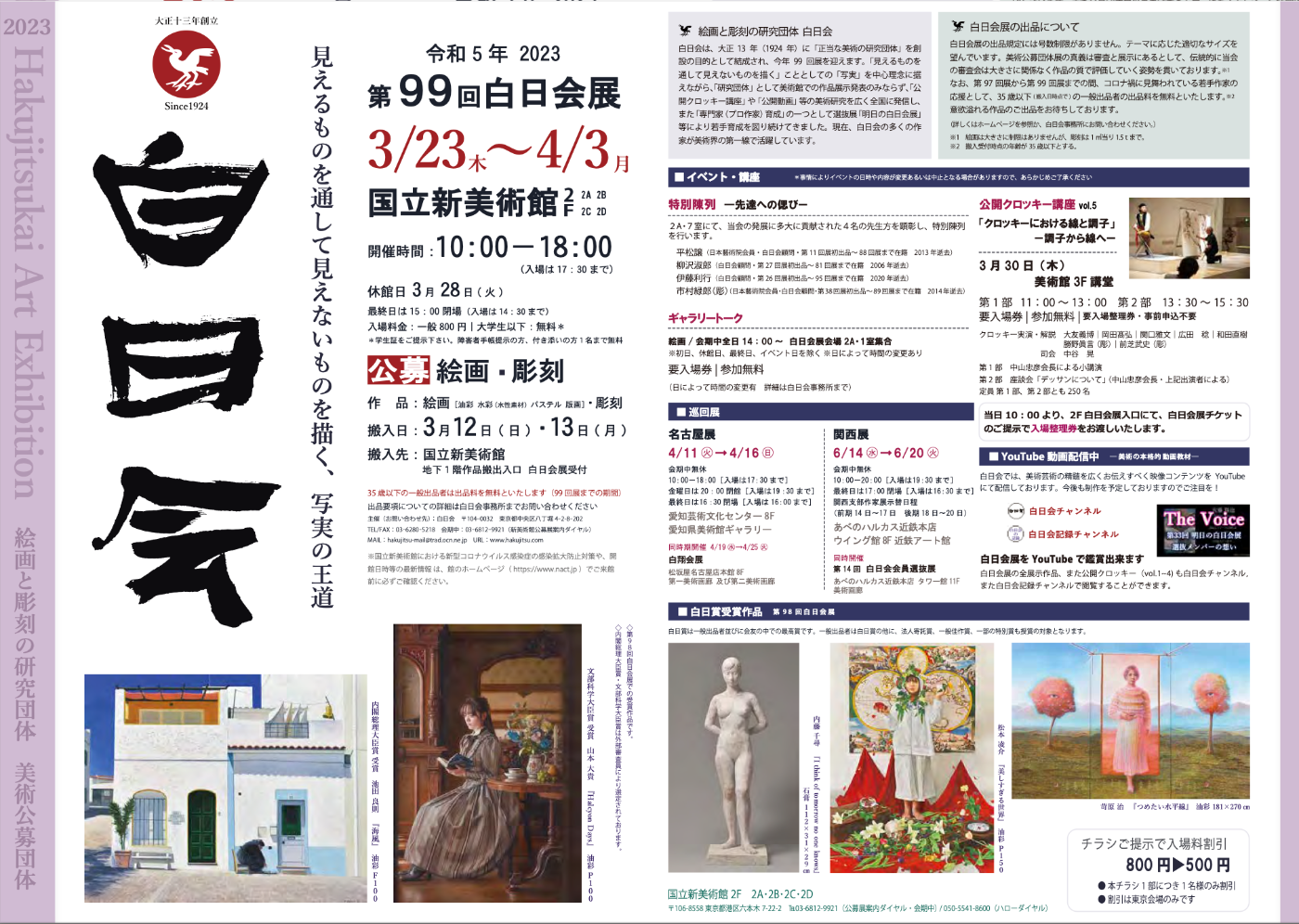 2023年令和5年第99回白日会の入選者発表が先日ありました。