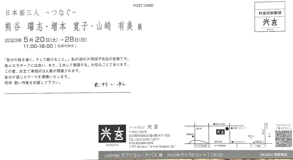 【展覧会】増本寛子先生ー日本画三人展ー「つなぐ」2023年5/20〜28(アートサロン光玄)