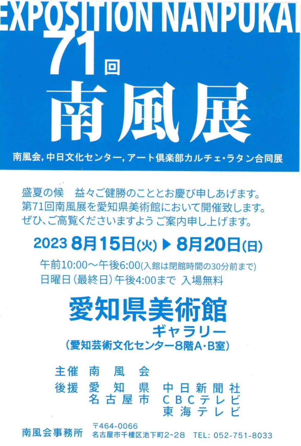 【展覧会】2023年・第71回南風展(南風会、中日文化センター、アート倶楽部カルチェ・ラタン合同展)始まりました!