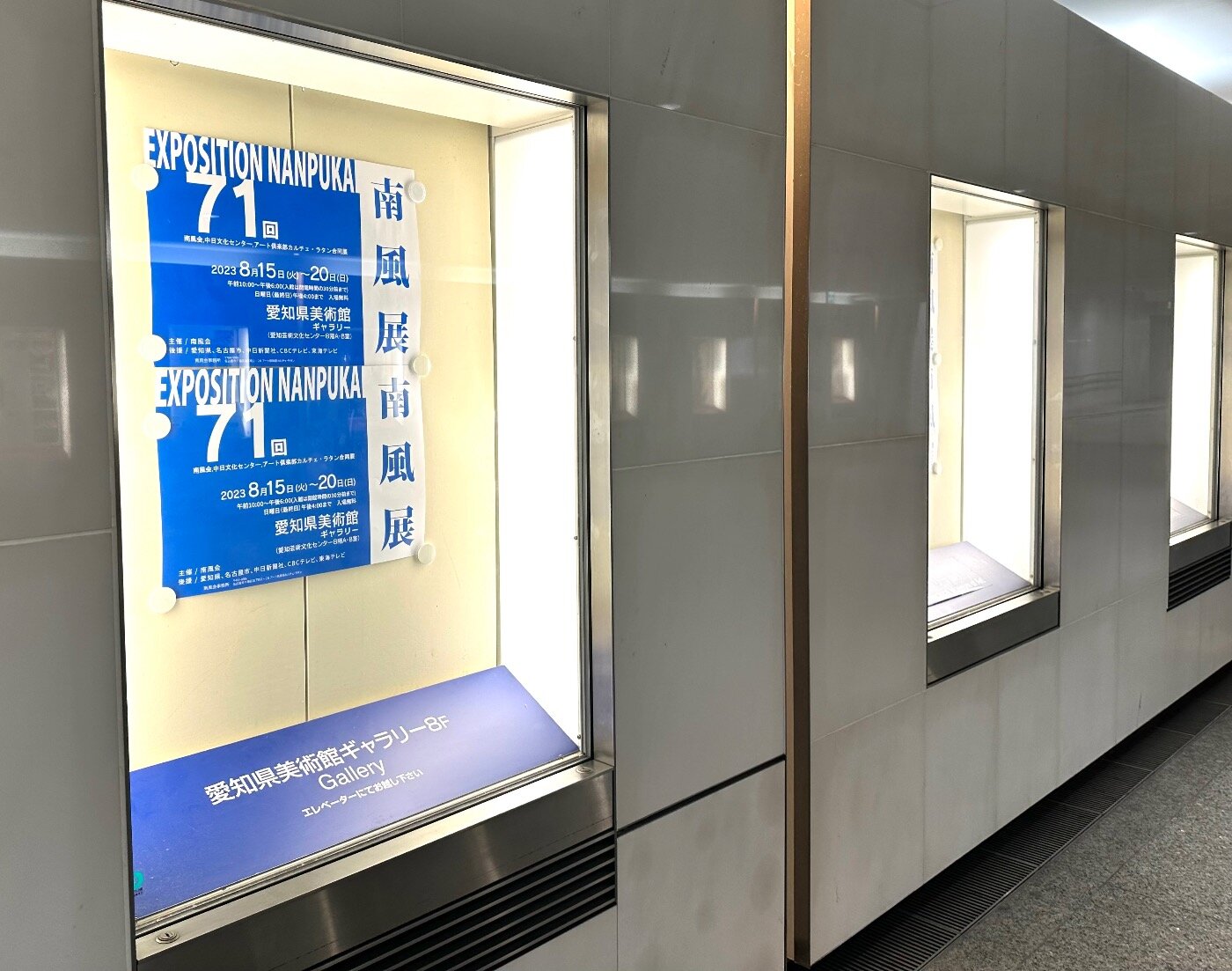 写真上・オアシス21から愛知県美術館への通路にもポスターが貼られています。