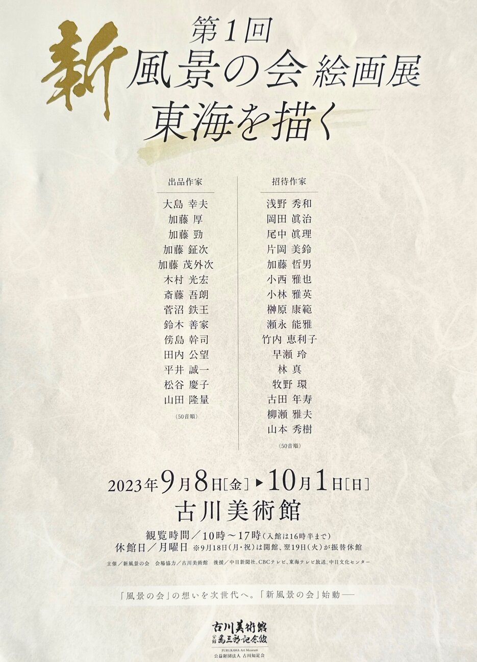 【展覧会】追記あり・古川美術館9月8日(金)~10月1日(日)迄『風景の会』絵画展/カルチェラタン講師も出品されます
