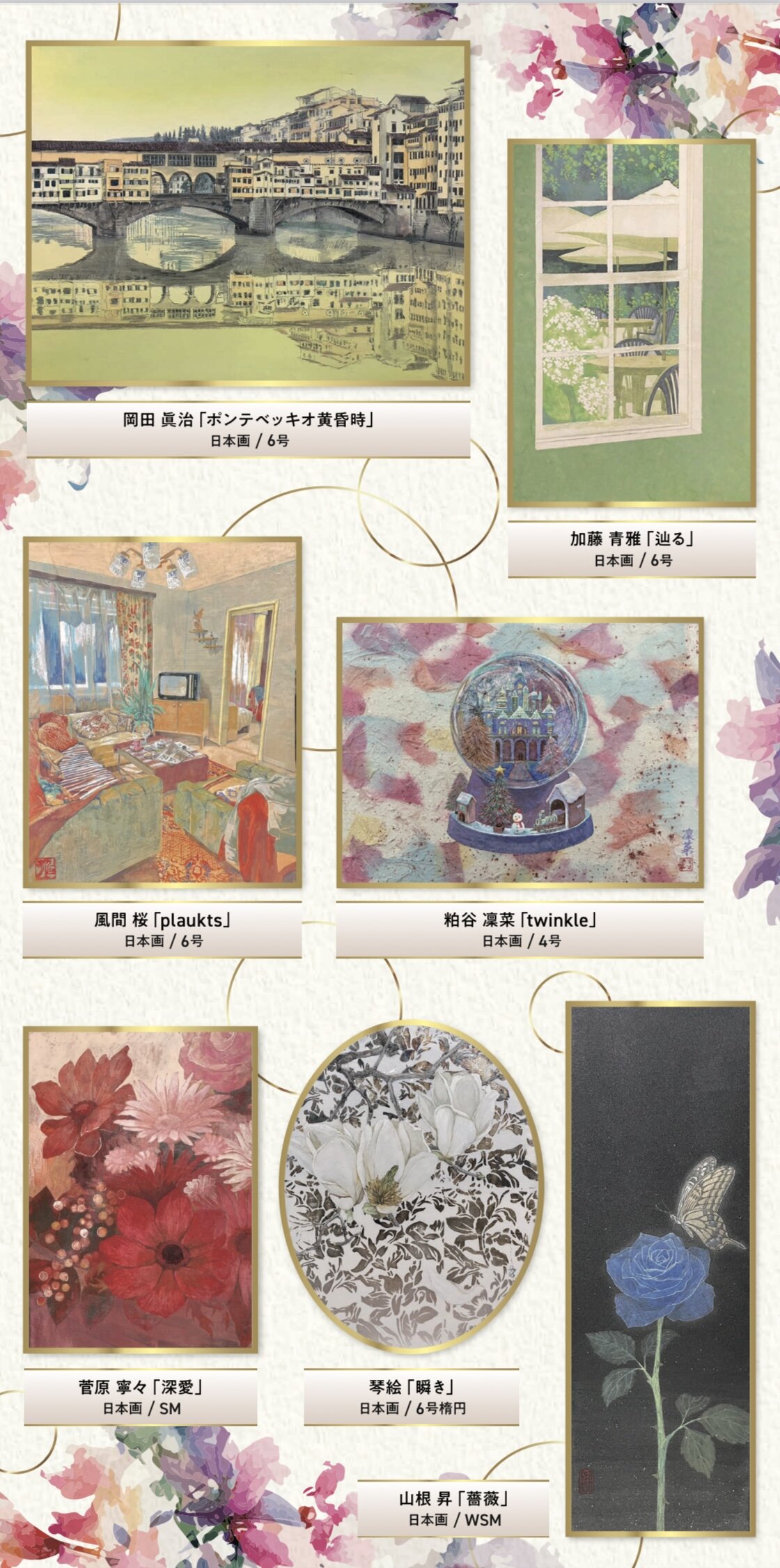 この度、愛知県立芸術大学教授の岡田眞治先生を筆頭に、卒業生・在学生6名総数7名による日本画展「Primavera」を開催させていただきます。
