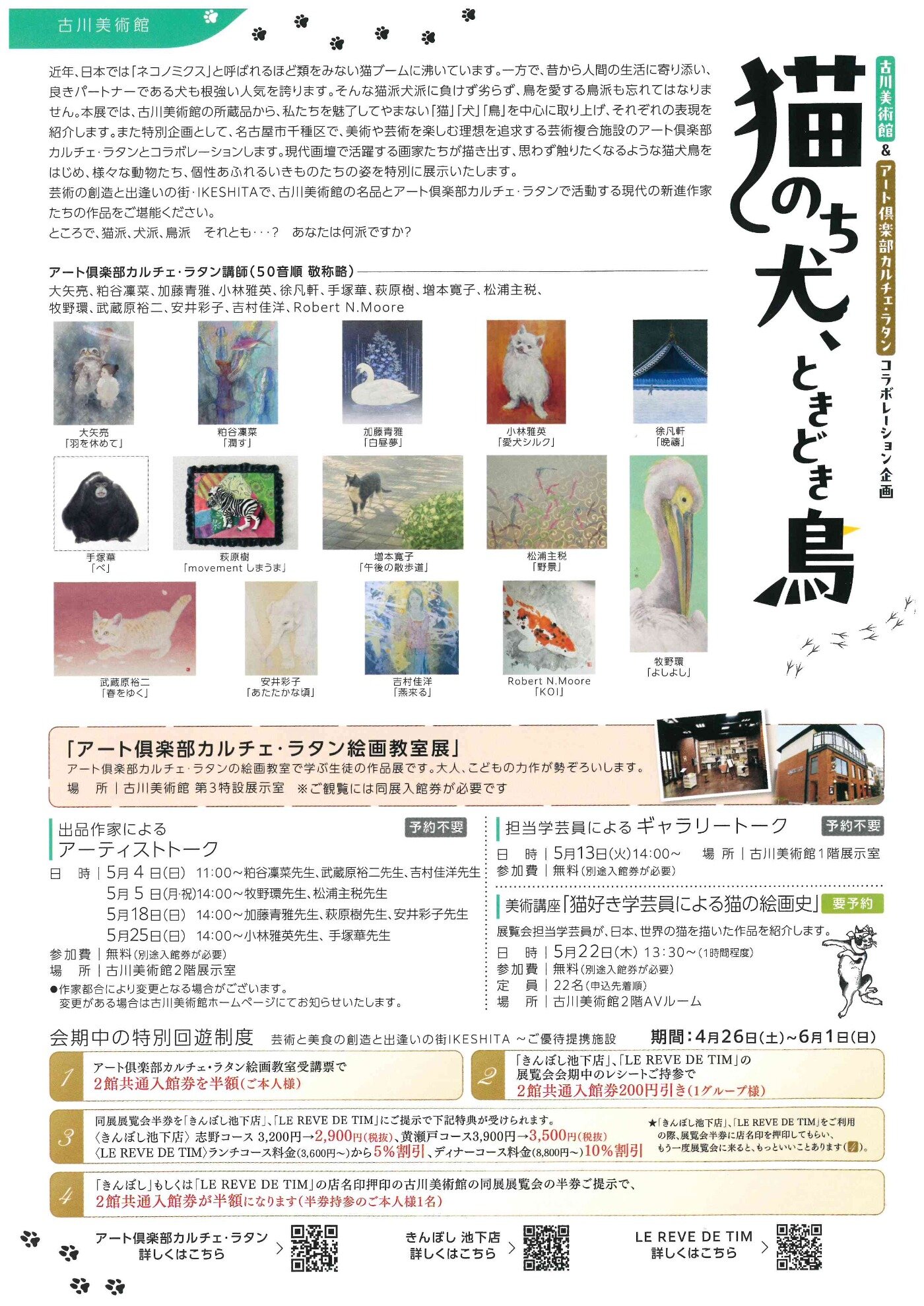 『猫のち犬、ときどき鳥展』が古川美術館で開催されます。