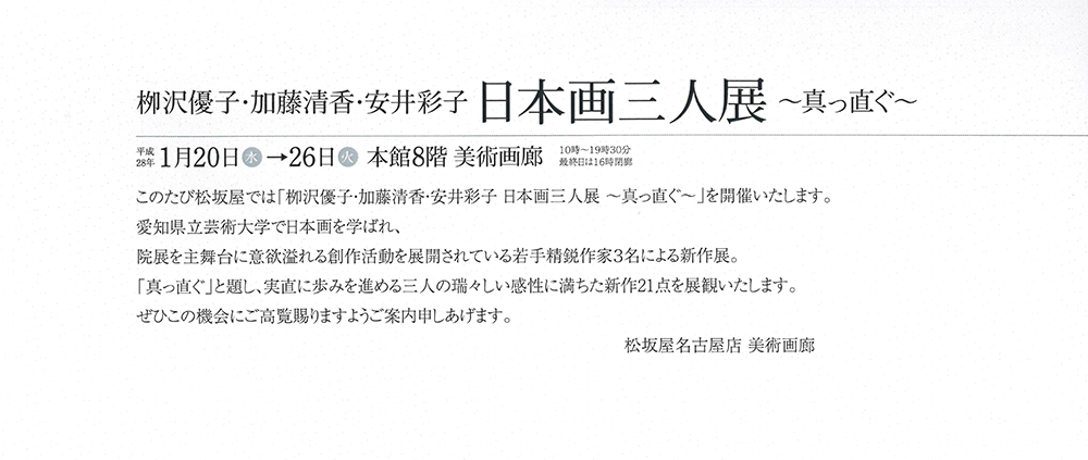 柳沢優子・加藤清香・安井彩子 日本画三人展-真っ直ぐ-
