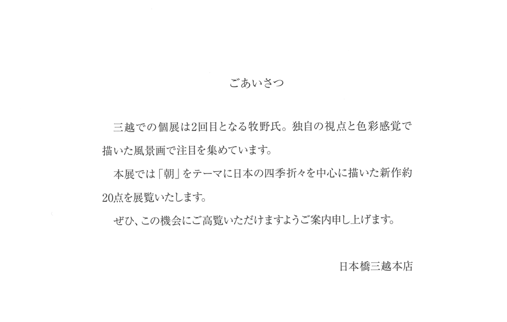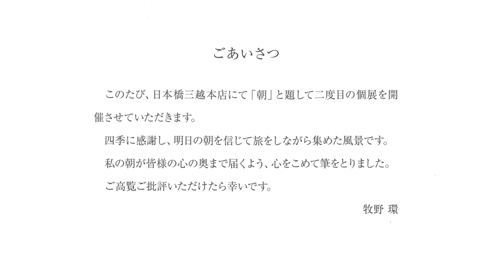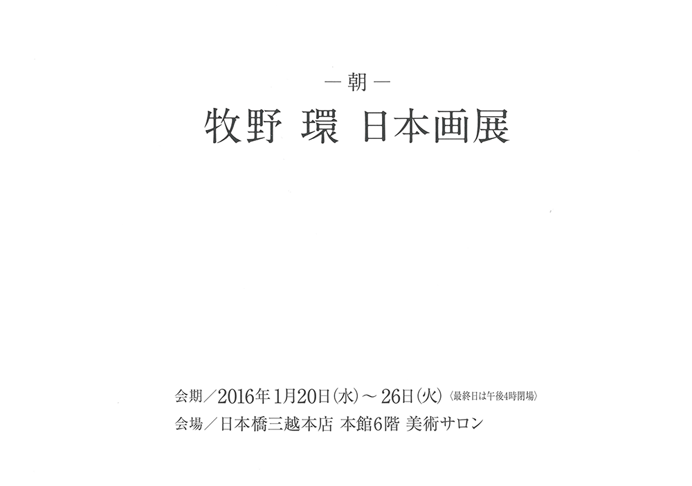 牧野環 日本画展 -朝- 日本橋三越にて1月20日(水)から26日(火)まで