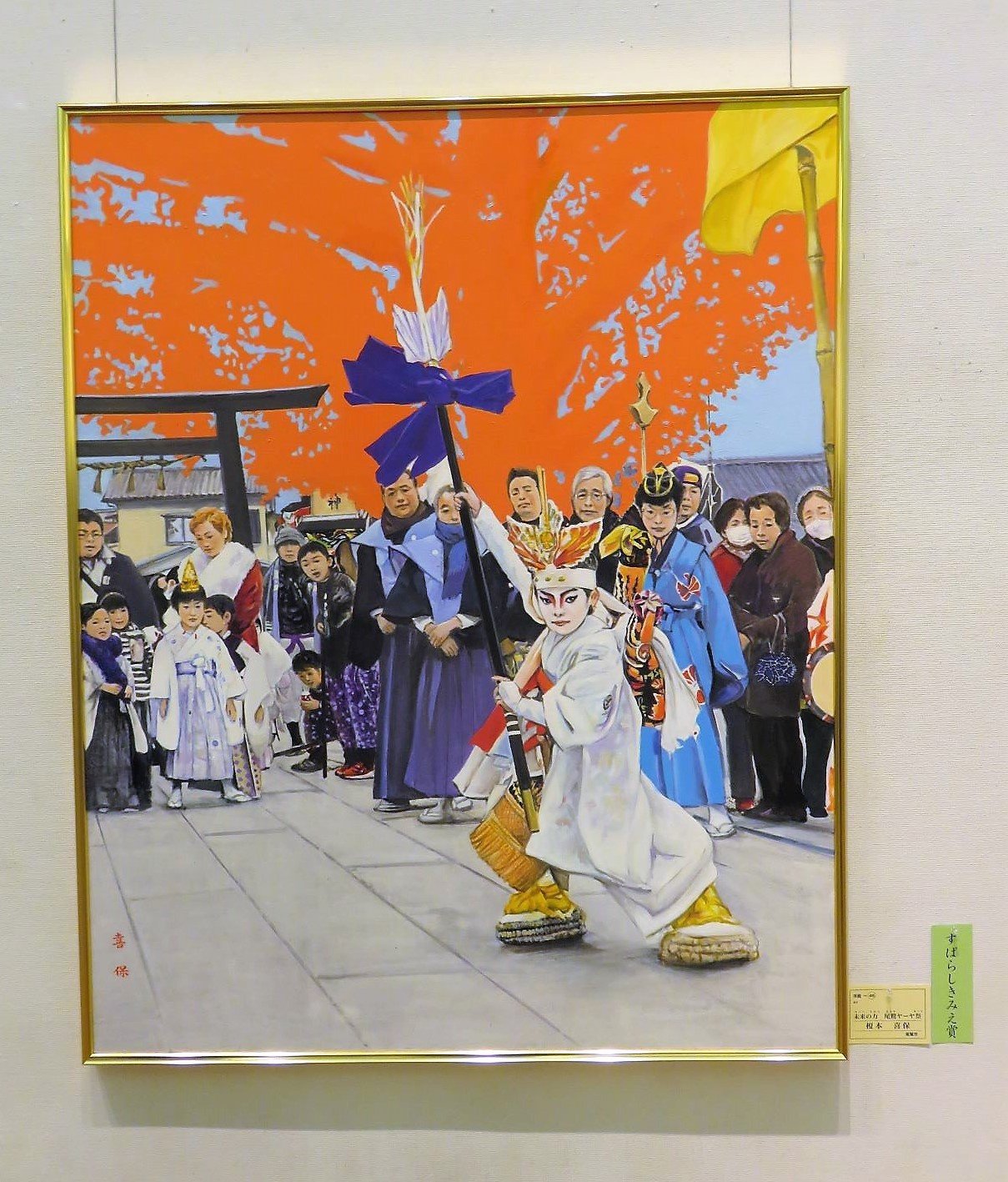 審査票 <未来の力 尾鷲ヤーヤ祭>は、すばらしきみえ賞にふさわしく、郷土への愛と未来への希望が、背景の大樹をオレンジのシルエットで構成する巧みな構想によって表現され、単なる記録的描写を越える力を感じさせた。