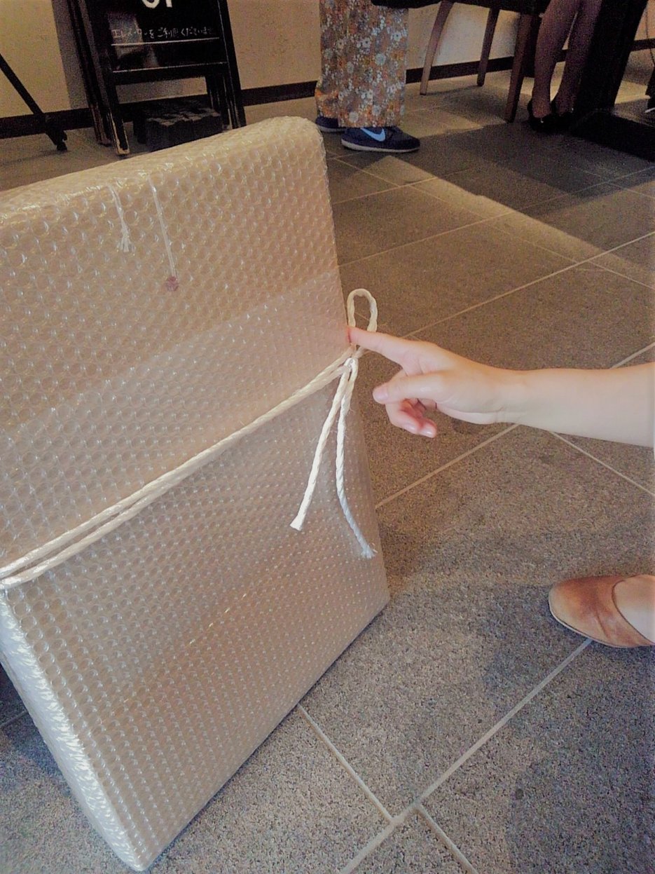 画家にとって額はもちろん、保管する箱も非常に大切なものだから、傷が付かないよう大切に扱っています。 箱に直接紐をかけるのではなく、まずはプチプチを巻き、その上から紐をかけます。