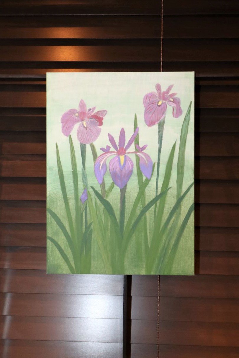 日本画クラスに通い始めて1年目の生徒さんの作品です。月2回のレッスンにしっかり通い、さらに1日6時間まで使えるオープンアトリエ(自習室)も上手に活用しているので、1年目でもここまで描けるようになりました。