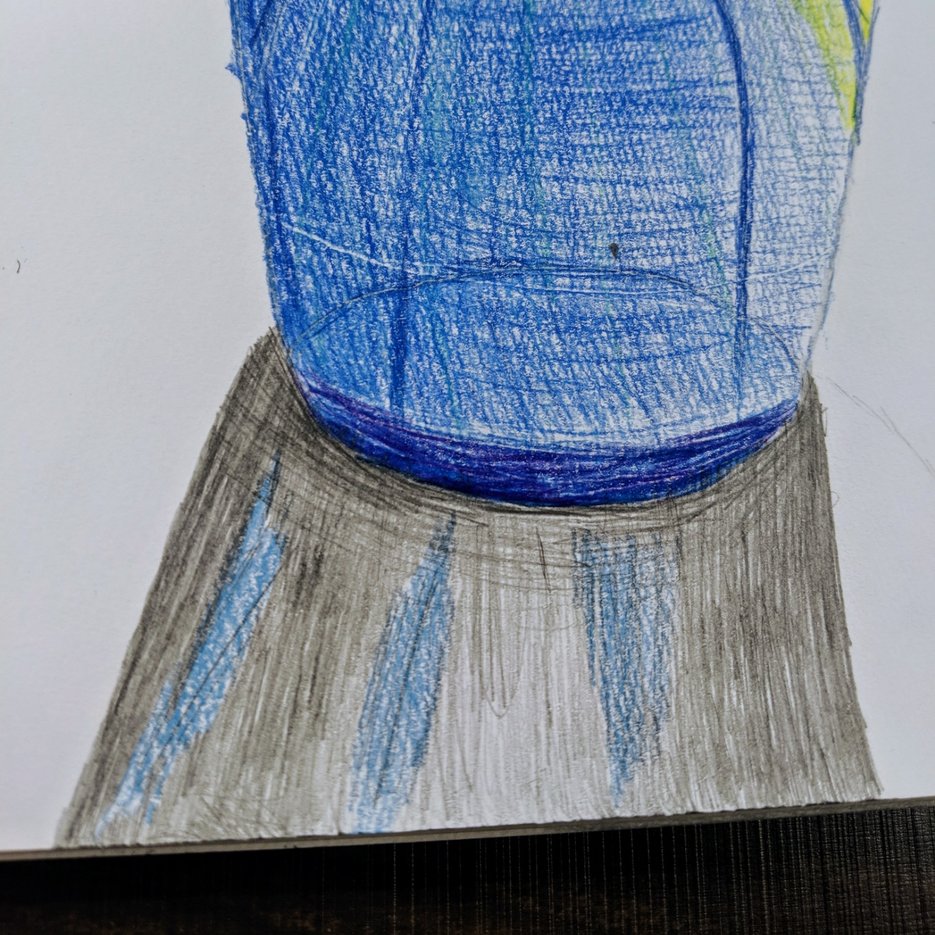 今までは色鉛筆の単色を活かした爽やかな作品が多かった方ですが、こちらの作品は色を何層も重ねて塗られていて、色に深みが増しました。