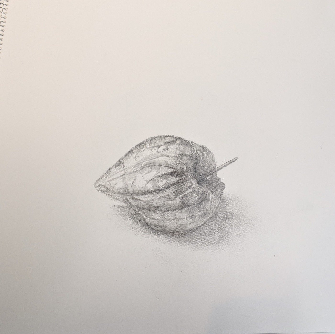 白くツルンとしていて一見するとシンプルなモチーフなのですが、鉛筆や色鉛筆で繊細な中間色を描き分けられています(^^)