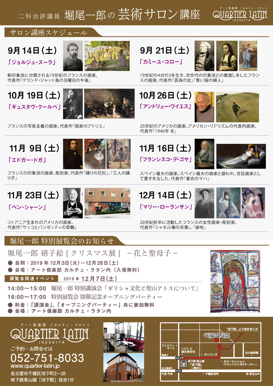 お電話/052-751-8033 アート倶楽部・カルチェ・ラタン受付