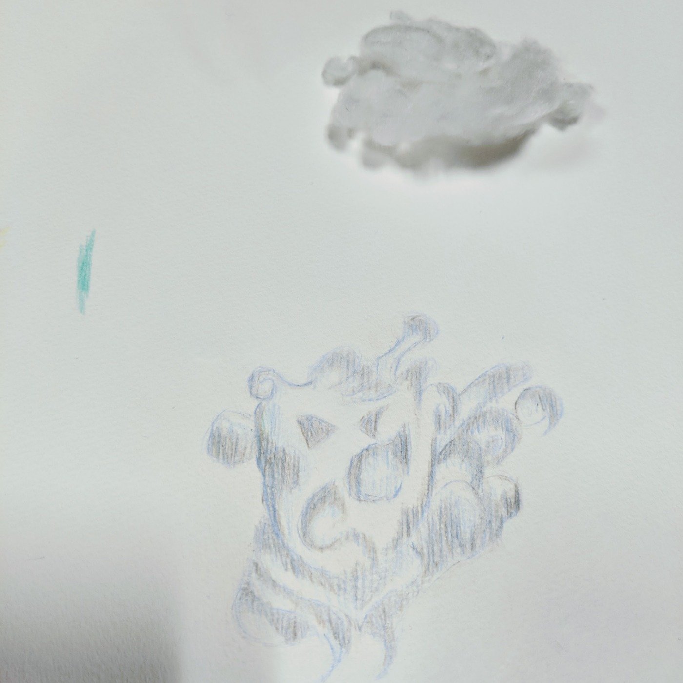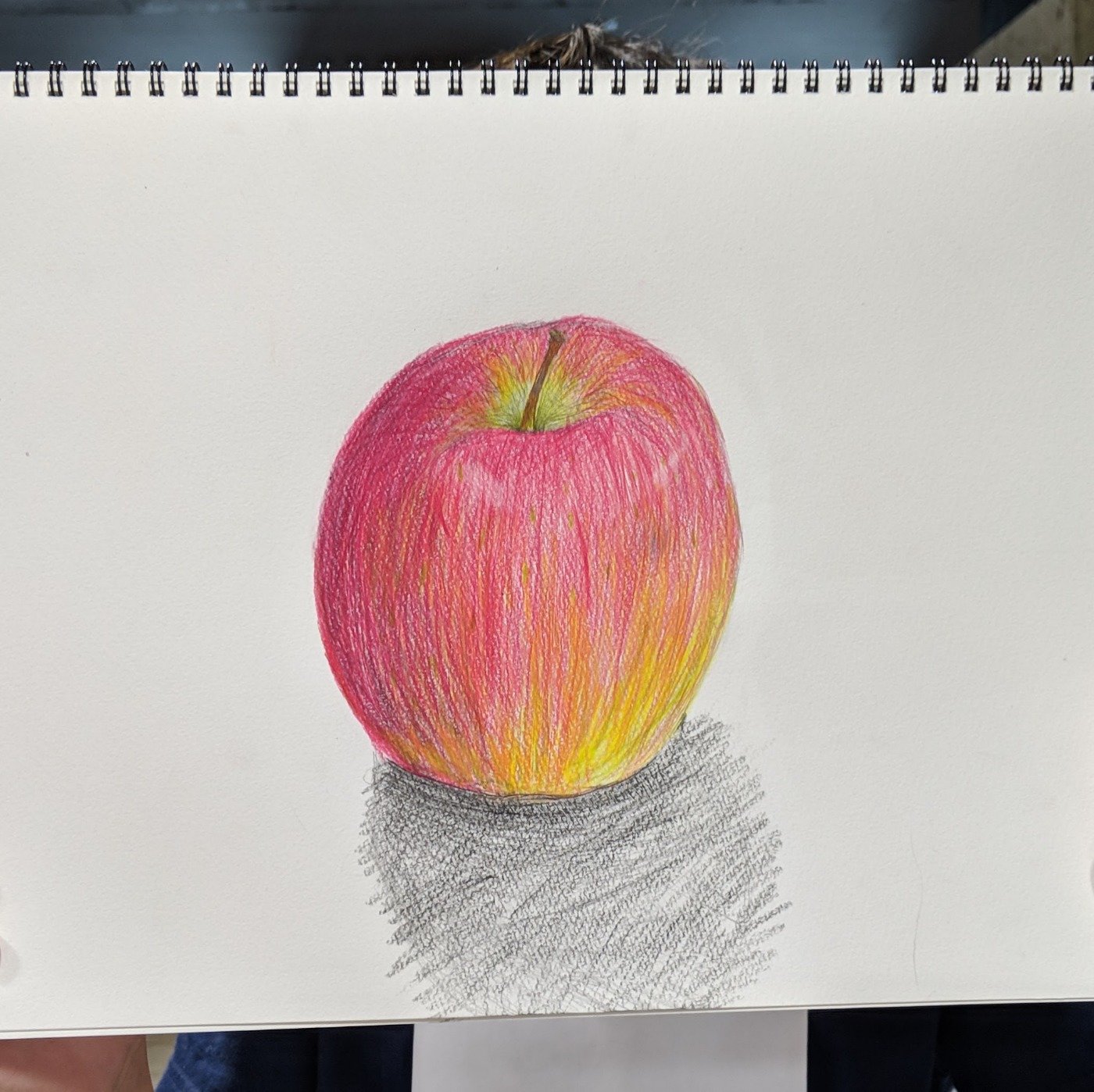 こちらは別の生徒の方の作品。綿を色鉛筆で描きました。初めて描かくモチーフは、まだ見ぬ発見の連続で制作しているとワクワクしますよね。どんな解釈でモチーフをどう描くのか、楽しんだり悩んだりしながら制作できました。