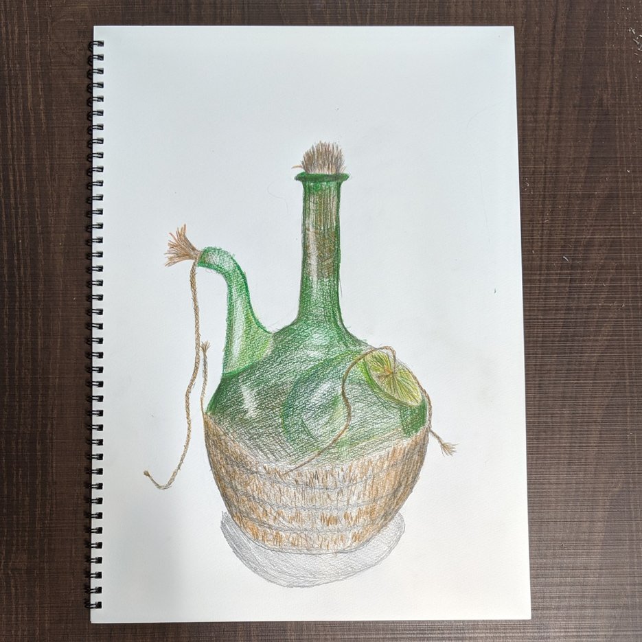 小学生のD君は、花瓶やグラスといった器をメインに色鉛筆画を制作してきました。